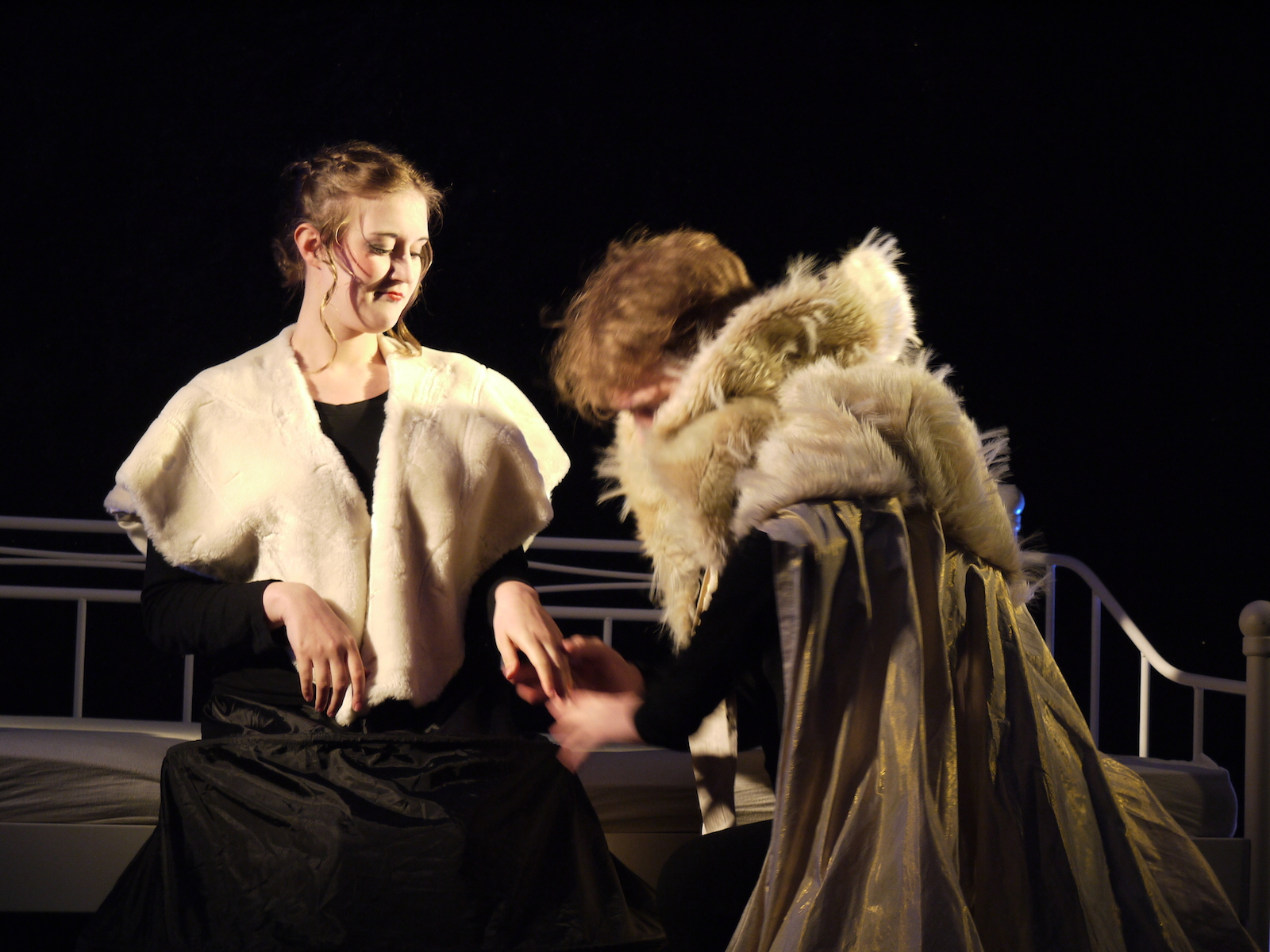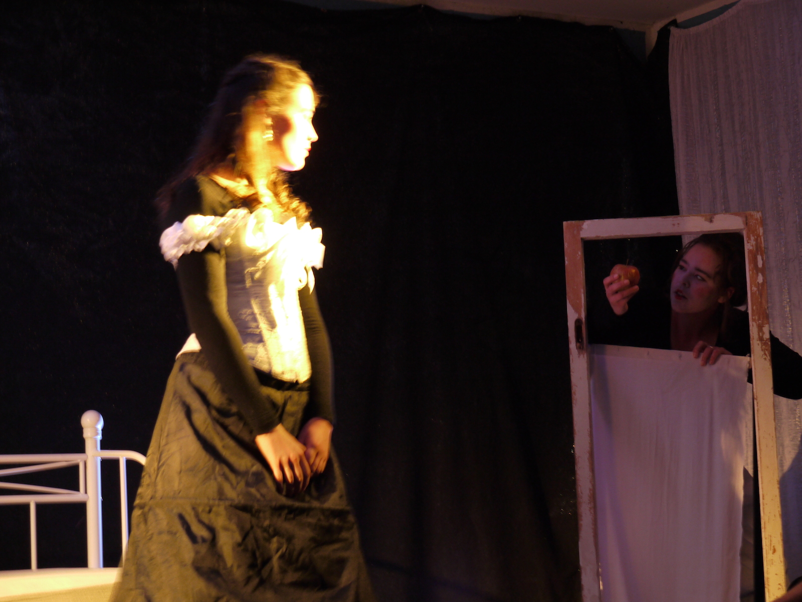 Grundlage unseres Theaterstücks sind die Hausmärchen der Gebrüder Grimm. Einzelne, ausgewählte Erzählungen sind so miteinander verwoben, dass nicht mehr nur von einer einzelnen Begebenheit berichtet wird, sondern ein in sich geschlossener Märchenkosmos entsteht, der seiner ganz eigenen Logik folgt. Markante Motive, wie das Gefressen-Werden, unfreiwilliger Schlaf junger Mädchen, oder böse Stiefmütter, die ihre Schutzbefohlenen als bedrohliche Konkurrenz wahrnehmen und demzufolge auszuschalten suchen, fungieren dabei als Modulator, um von einer zur nächsten Geschichte zu wechseln. Übrigens stammen alle verwendeten Texte original und wortwörtlich aus den „Kinder- und Hausmärchen“ der Gebrüder Grimm!