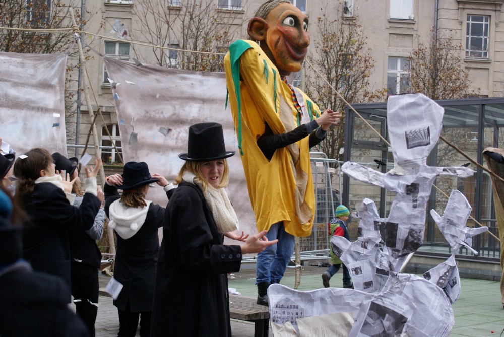 Uniater beschreitet neue Wege und hat erstmals ein Straßentheaterstück mit Großobjekten/-puppen inszeniert!!! Die künstlerische Leitung übernimmt das polnische Teatr Klinika Lalek, das mit Spielern von Uniater und TeilnehmerInnen aus Polen „Momo“ von Michael Ende in eine Straßenperformance verwandeln hat, die u.a. beim Potsdamer Sternenmarkt aufgeführt wurde. Die Produktion „Momo“ ist auf 3 Jahre hin angelegt und wird 2015 und ’16 an verschiedenen Orten entlang der deutsch-polnischen Grenze aufgeführt werden.